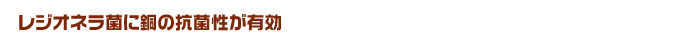 約50度のお湯の中でも繁殖するやっかいなレジオネラ菌に対しても、銅は優れた抗菌効果を持っています(北里大・日本防菌防緻学会発表)。